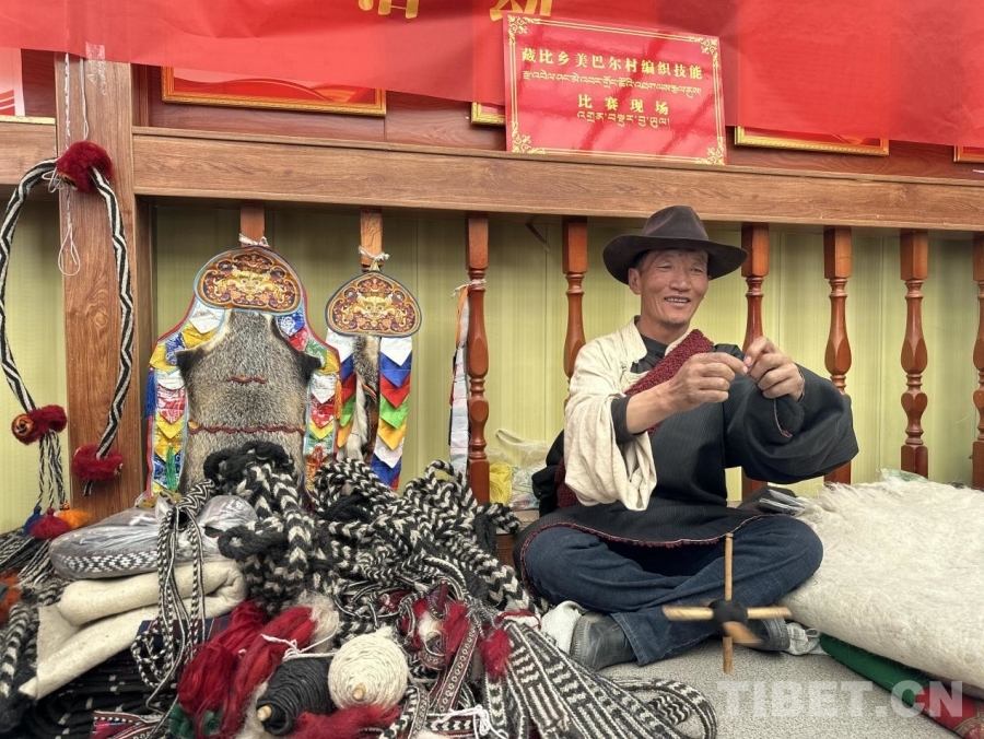 圖為藏比鄉(xiāng)美巴爾村編織技能比賽現(xiàn)場(chǎng)