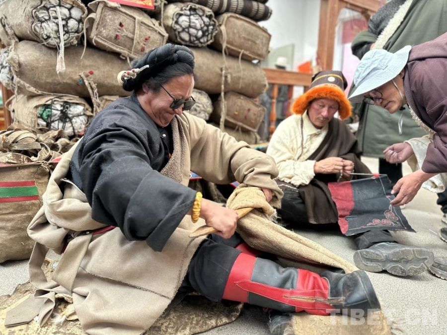 圖為藏比鄉(xiāng)美巴爾村皮具制作比賽現(xiàn)場(chǎng)