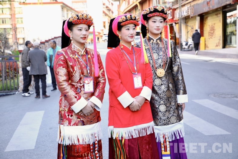 圖為身著當?shù)孛褡宸椀墓ぷ魅藛T 攝影:龍真多吉