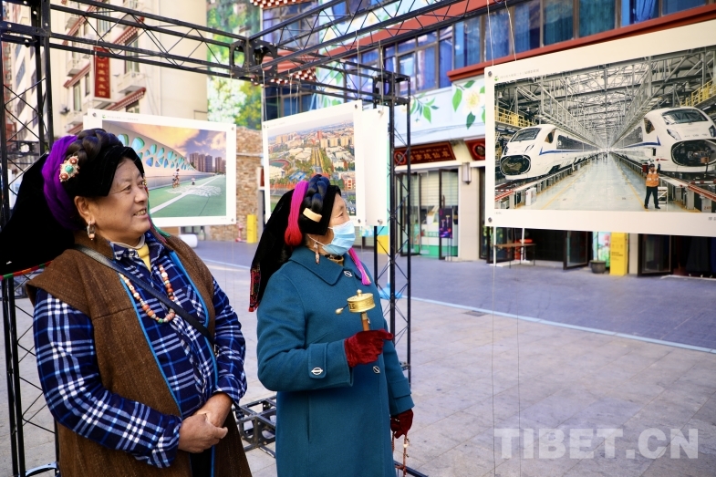 圖為當?shù)厝罕娪^看攝影作品 攝影:龍真多吉