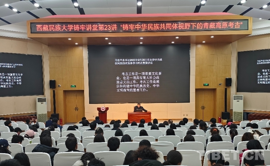 3月29日,為慶祝西藏自治區(qū)成立60周年,鑄牢中華民族共同體意識,西藏民族大學(xué)鑄牢講堂邀請四川大學(xué)杰出教授、教育部重要人才計(jì)劃、國家級教學(xué)名師霍巍作題為《鑄牢中華民族共同體意識視野下的青藏高原考古》學(xué)術(shù)講座。西藏民族大學(xué)黨委書記采守寬參加,西藏民族大學(xué)黨委常委、副校長任曉偉主持講座。