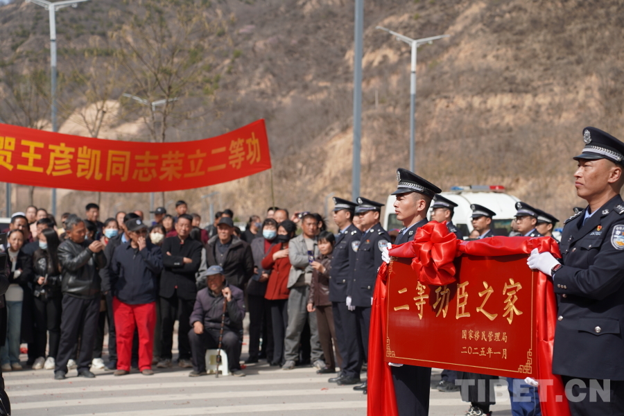 中國西藏網(wǎng)訊 近日,西藏邊檢總站山南邊境管理支隊跨越千里遠赴甘肅省慶陽市華池縣,與駐地公安局、退役軍人事務局及地方黨委政府等組成送獎隊伍,為榮立個人二等功的王彥凱同志“送獎到家”。