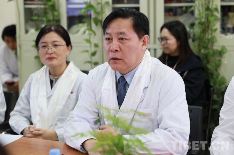 圖為北京朝陽(yáng)醫(yī)院骨科副主任醫(yī)師周立金介紹在該院救治的5名四川省甘孜州石渠縣脊柱側(cè)彎患兒的病情及手術(shù)方案攝影:劉莉