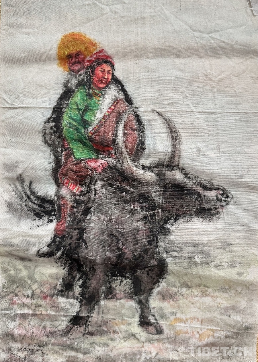 圖為王萬青手繪自己和妻子騎牦牛外出送醫(yī)送藥的情景 攝影:易文文