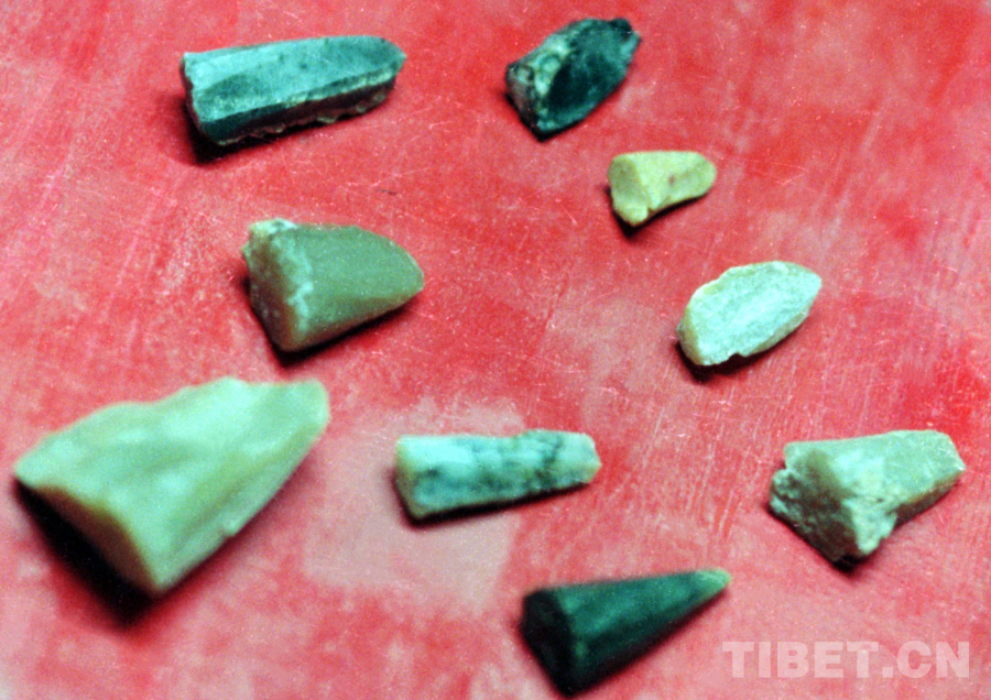 巴毛瓊宗海拔4870多米。我們在這1000平方米左右的地方,共采集到了100多件以石片、石器為主要特征的打制石器,而這些刮削器和切割器絕大部分都以灰色或黑色的硅質(zhì)巖來制作。同時,還在這里發(fā)現(xiàn)了一座占地面積為400平方米左右的古石丘墓葬群。