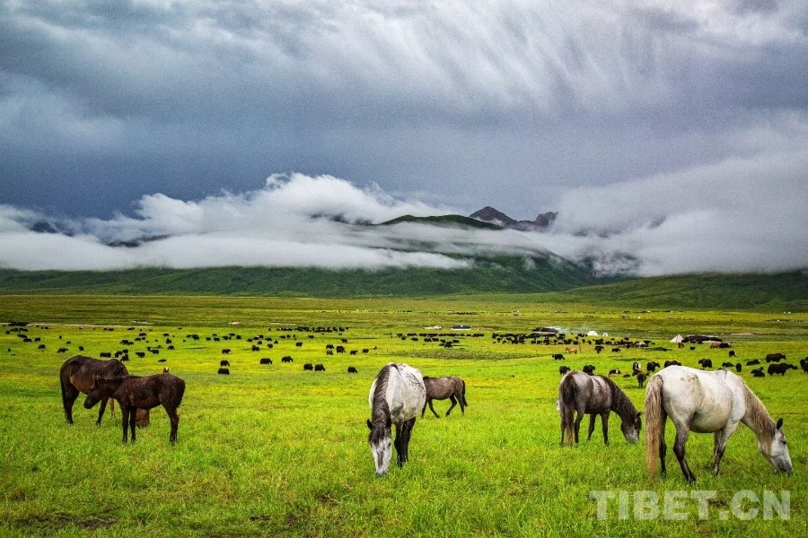 在這里,千百年來(lái)牧民們轉(zhuǎn)場(chǎng)放牧的古老智慧,讓草場(chǎng)得以休養(yǎng)生息;煨桑的裊裊青煙,將感恩與敬畏注入每一寸土地。在這里,阿萬(wàn)倉(cāng)牦牛以蹄印丈量時(shí)間,歐拉羊群如云影般掠過(guò)草原,河曲藏獒守護(hù)著草原的漫漫長(zhǎng)夜,河曲馬踏響格薩爾王的千年傳說(shuō),它們都是舞動(dòng)在高原上的精靈。