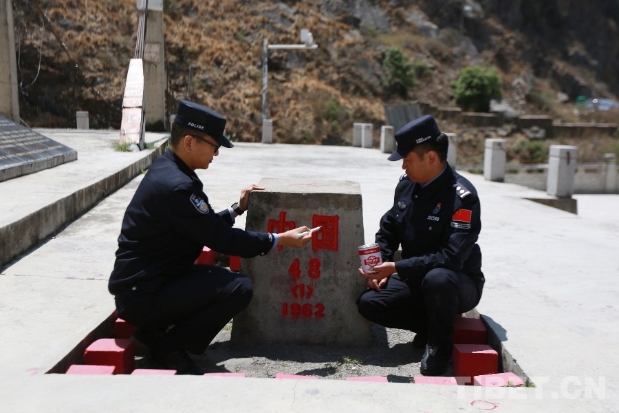 每當(dāng)巡邏至中尼邊境界樁,民警們總會俯身用紅漆仔細(xì)描紅,讓“中國”二字在蒼翠群山的映襯下愈發(fā)醒目,宛如永不褪色的誓言。