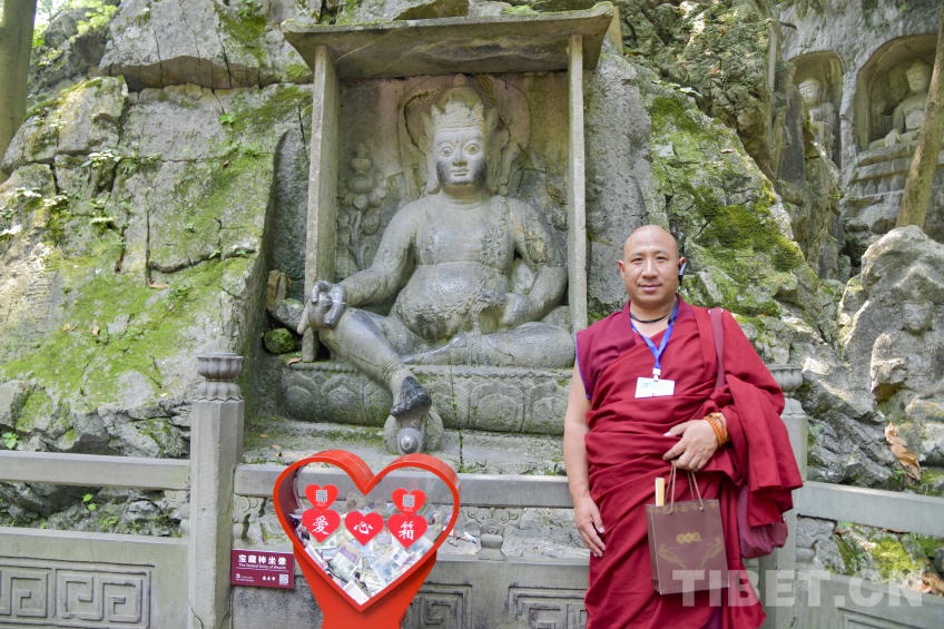 圖為西藏佛學(xué)院學(xué)員在飛來峰元代造像前留影 攝影:趙振宇