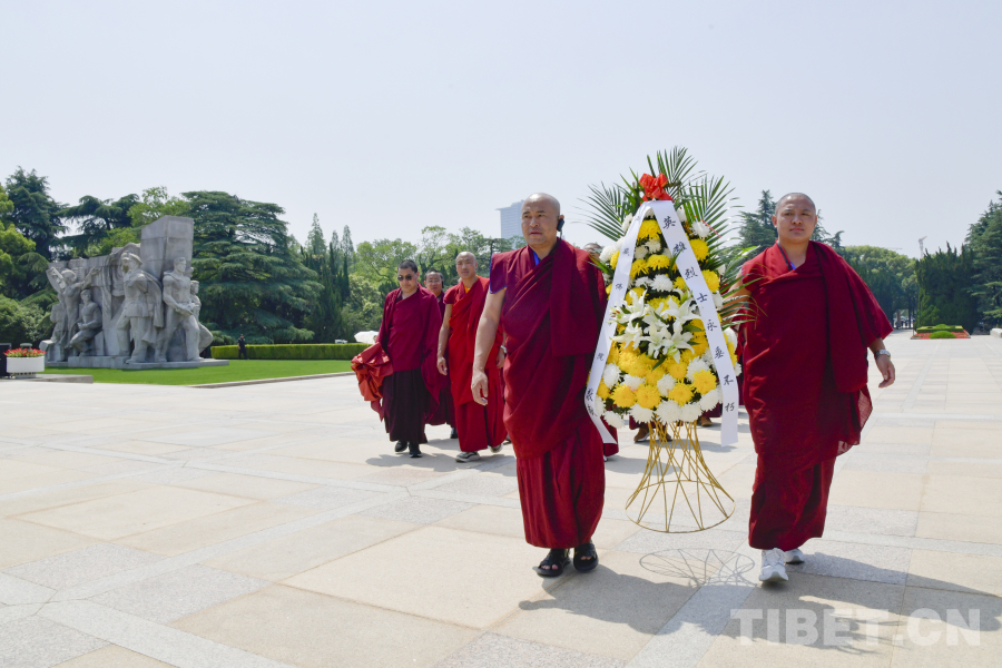 圖為在龍華烈士陵園西藏佛學院師生為革命先烈敬獻花籃 攝影:趙振宇