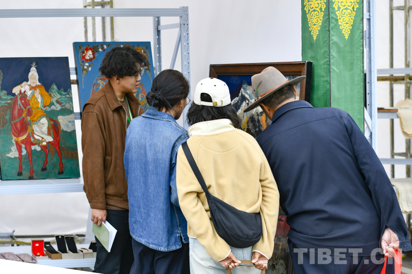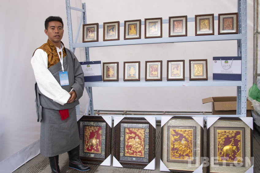 在集市的另一頭,是昌都市瑪吉阿媽唐卡畫院所展出的唐卡漆畫?!捌岙嬀哂欣L畫和工藝的雙重屬性。我們畫院主要是傳承嘎瑪嘎赤畫派的藝術(shù)作品,但近年來我們將傳統(tǒng)畫派藝術(shù)和福建漆畫進(jìn)行了有機(jī)結(jié)合,以漆畫的工藝結(jié)合唐卡的審美,創(chuàng)作出一系列作品。這些唐卡漆畫不僅在西藏很受歡迎,也有其他省份的人士向我們定制?!倍嗉嬖V記者,每一件唐卡漆畫都融合了西藏傳統(tǒng)故事、傳說等文化內(nèi)涵,不僅是一件藝術(shù)品,更是向外界展示西藏優(yōu)秀傳統(tǒng)文化的窗口。