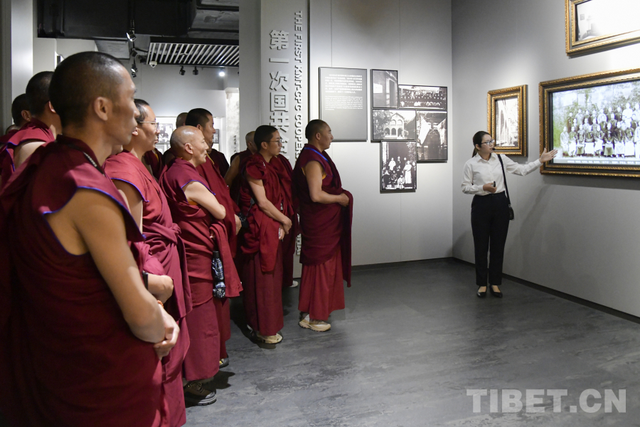 圖為西藏佛學(xué)院師生在嘉興南湖革命紀(jì)念館參觀了解中國(guó)共產(chǎn)黨建黨初期歷史 攝影:趙振宇
