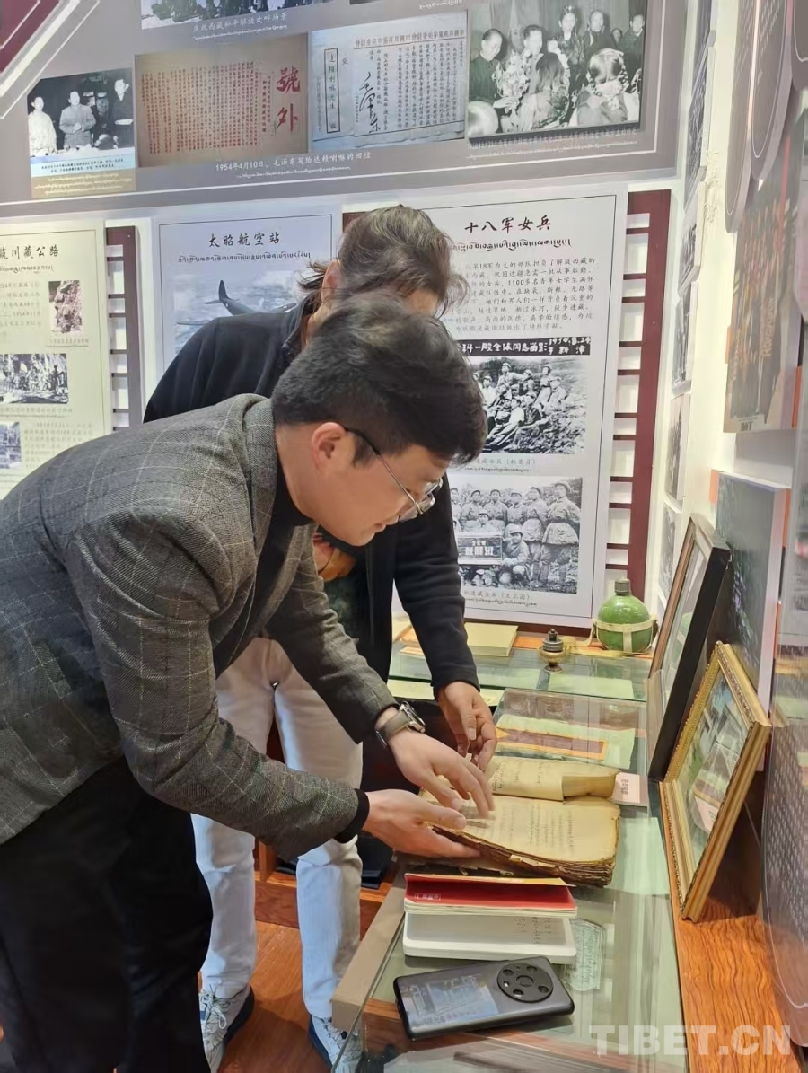 圖為林芝市紅色調(diào)研小組查閱歷史資料