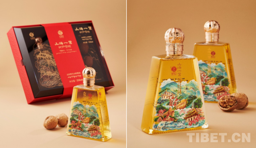 圖為在福建省援藏隊廈門工作組幫助下左貢縣推出的“山海一鷺”高原野生核桃油產(chǎn)品