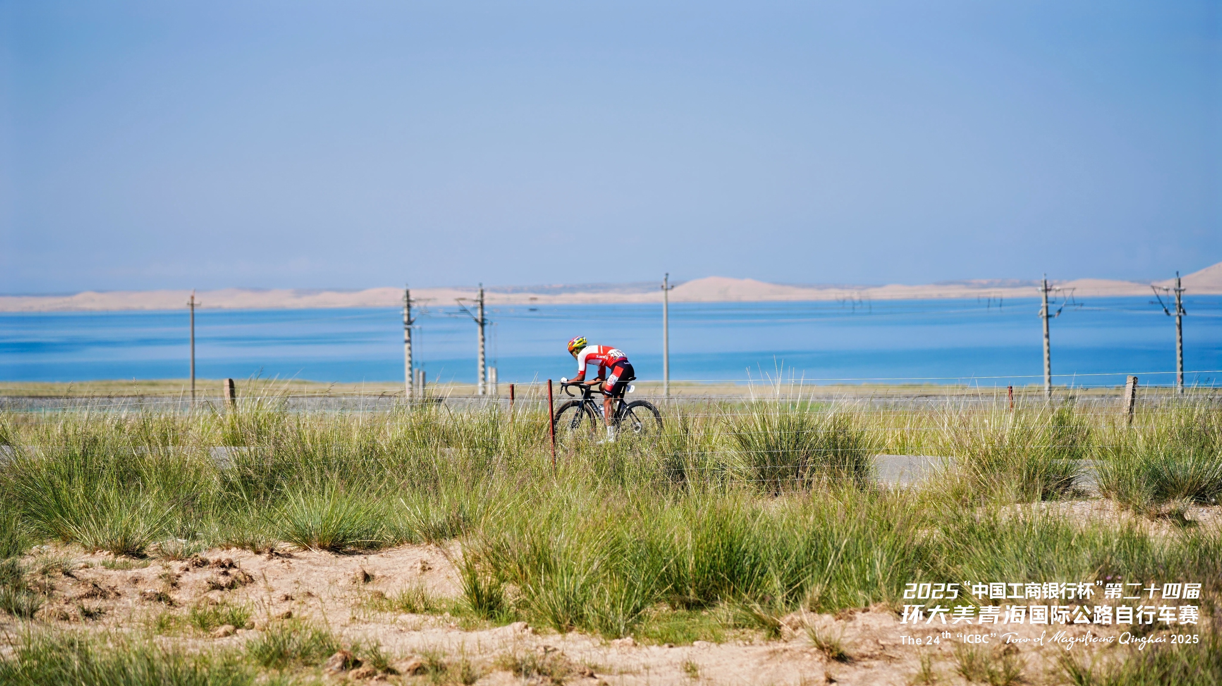 第二十四屆環(huán)青賽第六賽段——?jiǎng)偛?共和賽段,是本屆賽事距離最長(zhǎng)的賽段。車隊(duì)出發(fā)后不久便駛?cè)胫沫h(huán)湖公路,這段標(biāo)志性賽程承載著環(huán)青海湖賽事的精髓和回憶。作為環(huán)青賽的前身,環(huán)湖賽段以其獨(dú)特魅力吸引著全球騎行愛好者,人們沿著賽事路線打卡騎行,盡情領(lǐng)略青海湖畔的壯美風(fēng)光。