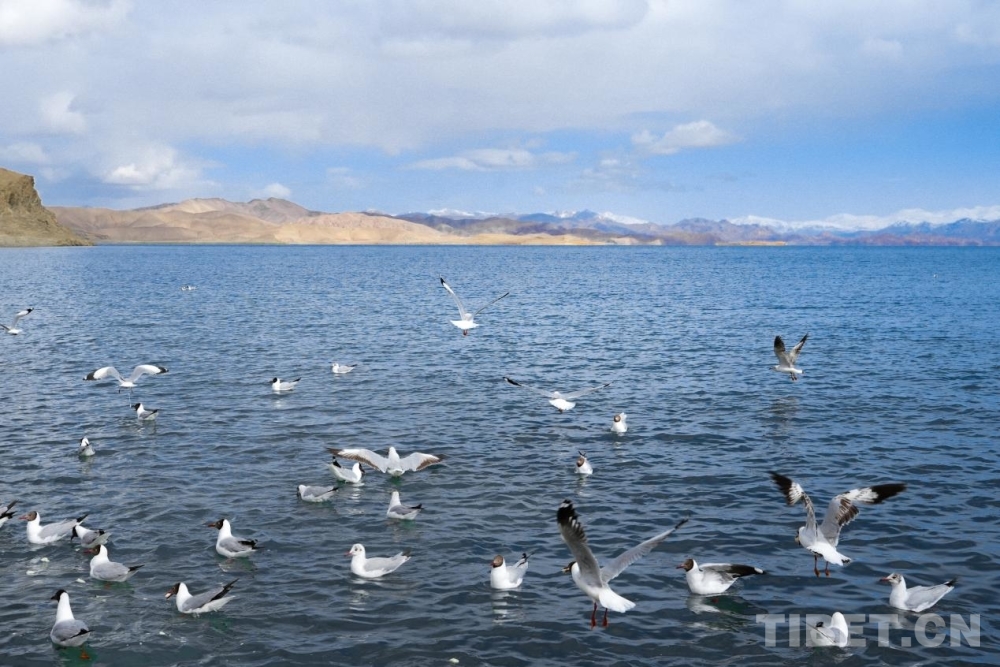 圖為6月,班公湖上棕頭鷗群集 攝影:邊子捷