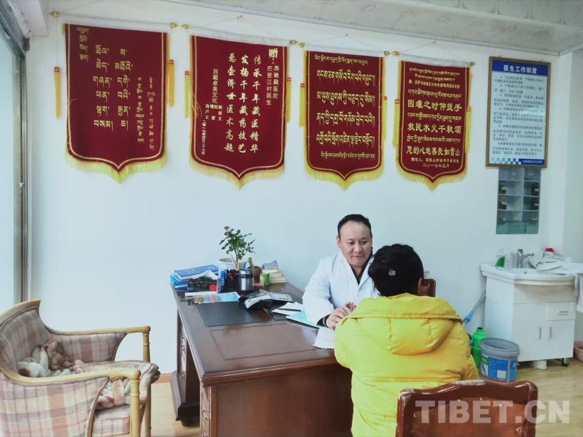圖為貢布多杰為患者把脈