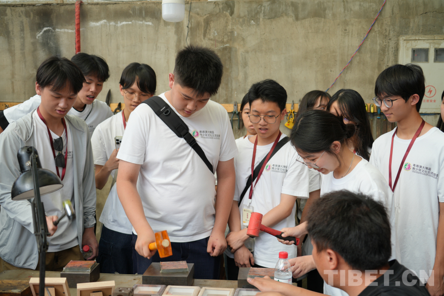 中國西藏網(wǎng)訊 7月17日,2025澳門青少年青海研學(xué)團(tuán)的同學(xué)們走進(jìn)位于青海省西寧市湟中區(qū)魯沙爾鎮(zhèn)的陽坡銀銅器加工產(chǎn)業(yè)園,在一錘一鏨中感受傳統(tǒng)技藝的魅力。
