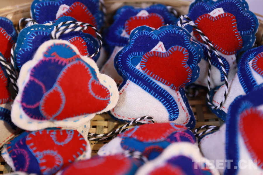 達(dá)娃片多介紹,店里大部分商品都是一針一線的純手工作品,制作者是來自西藏各地的群眾。公司會派出老師到西藏各地為群眾進(jìn)行手工藝品制作培訓(xùn),并提供原材料和手工藝品訂單,從而形成手工藝品產(chǎn)銷合作關(guān)系,幫助群眾增加收入。經(jīng)過近20年的堅持和探索,現(xiàn)在已經(jīng)有500多位西藏各地女性參與制作。