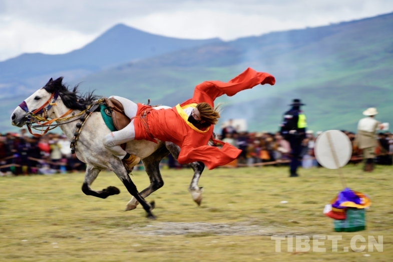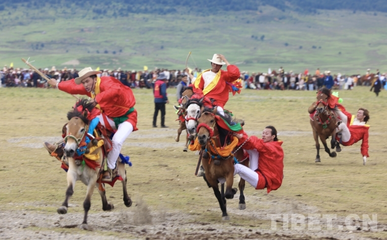 此外,來(lái)自奔戈鄉(xiāng)、禾尼鄉(xiāng)、曲登鄉(xiāng)和村戈鄉(xiāng)的馬隊(duì)還進(jìn)行了傳統(tǒng)馬術(shù)表演,馬背倒立、馬肚藏身、俯身拾哈達(dá)等精湛技藝,讓觀(guān)眾大飽眼福,充分感受到了理塘賽馬文化的魅力。