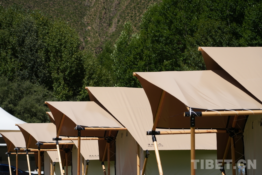 中國(guó)西藏網(wǎng)訊 站在觀景臺(tái)遠(yuǎn)眺,綠樹成蔭,一陣風(fēng)吹過(guò),麥浪金黃;漫步色甫林卡,帳篷搭建得整整齊齊,牛羊悠閑地曬太陽(yáng);走進(jìn)望果賽馬場(chǎng),當(dāng)?shù)厝罕娨言缭缵s來(lái)搭建帳篷,各家各戶其樂(lè)融融。
