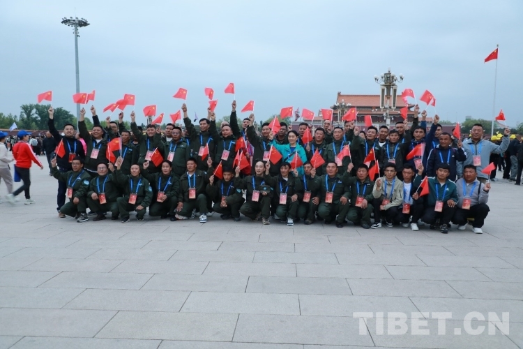 圖為2024年4月,“西藏自治區(qū)野生動物保護員進京考察學(xué)習(xí)團”成員觀看升旗儀式并集體合影留念 攝影:莫干措 (資料圖)