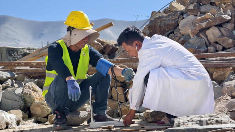 健康守護(hù)網(wǎng),筑牢重建防線。月初頂層澆筑時(shí),施工隊(duì)員老張不慎踩中鐵釘。駐村工作隊(duì)立刻協(xié)同村醫(yī)貢嘎旦增現(xiàn)場(chǎng)處置,全程跟蹤治療確保傷口未感染。貢嘎旦增的足跡遍布工地,開展健康服務(wù)5輪,測(cè)量血壓47人次,發(fā)放常用藥品30余份,覆蓋200余人。鄉(xiāng)衛(wèi)生院院長為19名群眾定制慢性病方案,藏醫(yī)拉姆的“呼吸調(diào)節(jié)法”更有效舒緩了70余人的心理焦慮。