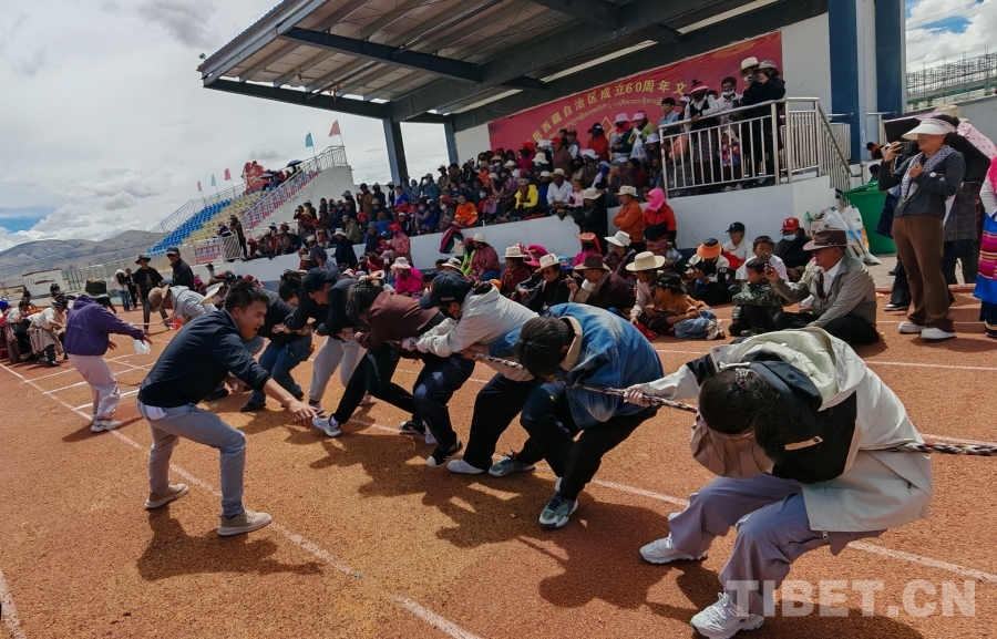文藝演出落幕,文體活動(dòng)接棒升溫。100米、200米賽道上,選手們?nèi)珉x弦之箭,奔跑中揚(yáng)起的塵土里;拔河繩兩端,隊(duì)員們腳蹬大地、身向后仰,加油的號子聲震得地上的石子都在跳;抱沙袋、押加項(xiàng)目中,選手們咬緊牙關(guān)、全力拼搏,圍觀群眾的吶喊助威聲浪一波高過一波;穿藏服拌糌粑環(huán)節(jié),大家整理衣襟、系緊腰帶,青稞粉與礦泉水在手中交融,香氣里飄著“共話家?!钡臏厍椤宽?xiàng)活動(dòng)都是一次“心與心的對話”,讓團(tuán)結(jié)的種子在互動(dòng)中生根發(fā)芽。