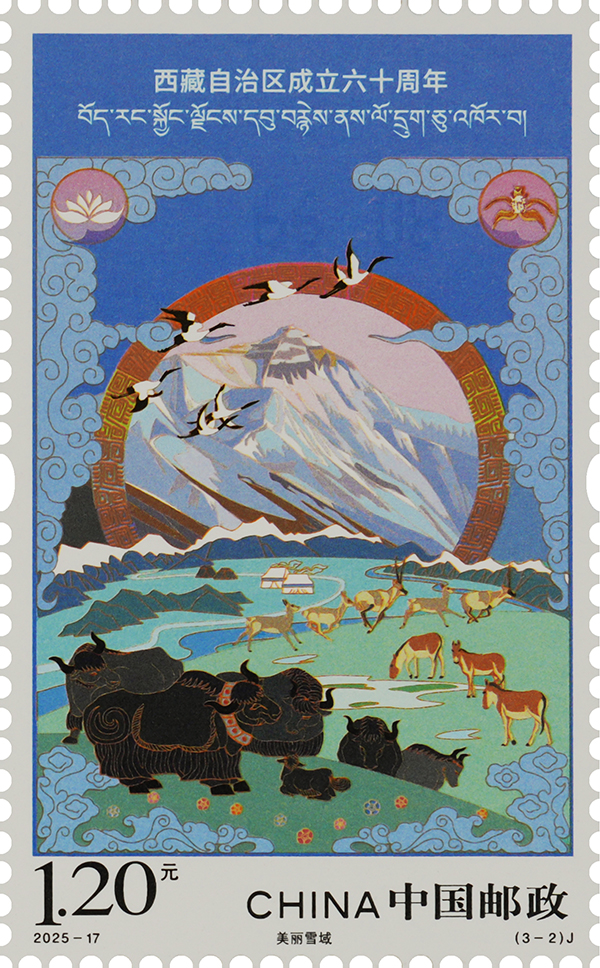 圖為《西藏自治區(qū)成立六十周年》紀(jì)念郵票之“美麗雪域” 中國(guó)郵政西藏分公司供圖
