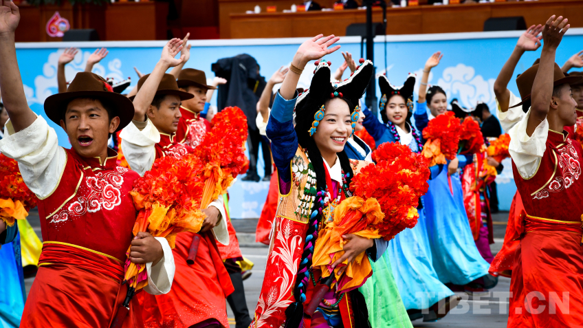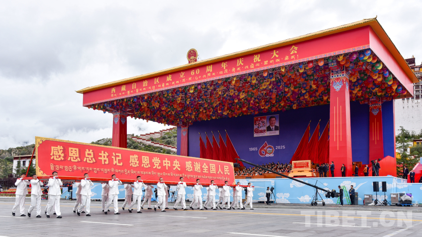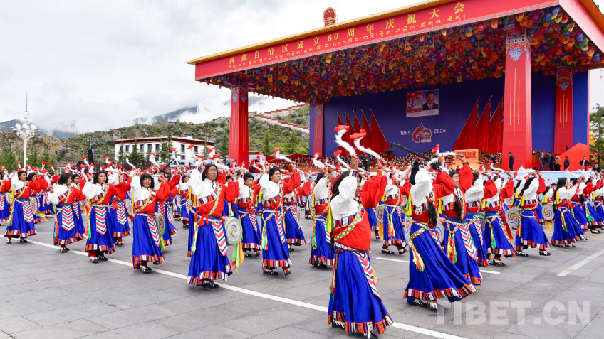 中國西藏網(wǎng)訊 8月21日上午,西藏自治區(qū)成立60周年慶祝大會在拉薩隆重舉行。慶祝大會舉行充滿吉祥喜慶氣氛的盛大群眾游行。游行分為“旗幟引領(lǐng)”“四件大事”“奮進新時代”“走向未來”4個單元,26個群眾游行方隊、彩車,在歡快的音樂中依次行進。各族群眾身著絢麗多彩的服飾,跳起熱情歡快的舞蹈,表達過上幸福生活的喜悅之情、對黨和國家的感恩之情。(中國西藏網(wǎng) 記者/王淑 趙振宇 德吉卓瑪 次旦拉姆 旦曲 賈華加 趙釗 姚浩然 劉莉 邊子捷 馮重霖 楊眉笑)