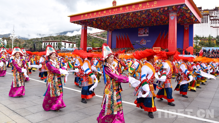 圖為西藏自治區(qū)成立60周年慶祝大會群眾游行 攝影:趙振宇