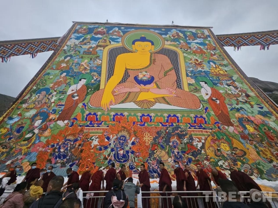 圖為色拉寺展佛現(xiàn)場 攝影:胡青