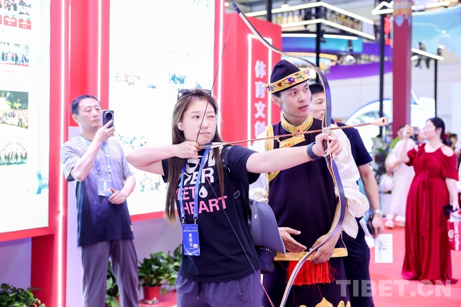 專業(yè)藝術(shù)團(tuán)精心排演的《幸福西藏》節(jié)目在西藏展廳輪番展演;搭建響箭、秀茲(藏式骰子)體驗(yàn)區(qū),高度還原世界海拔最高的龍舟賽——西藏自治區(qū)端午節(jié)牛皮船(龍舟)賽開幕式場(chǎng)景,吸引了廣大游客駐足觀看,踴躍參與民族傳統(tǒng)體育項(xiàng)目,參與“畫龍點(diǎn)睛”儀式。另外精心準(zhǔn)備的體育文創(chuàng)產(chǎn)品,深受游客喜愛,爭(zhēng)相領(lǐng)取。