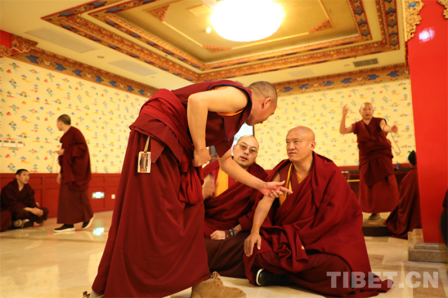 圖為西藏佛學院學員與中國藏語系高級佛學院學員辯經交流 攝影:王茜