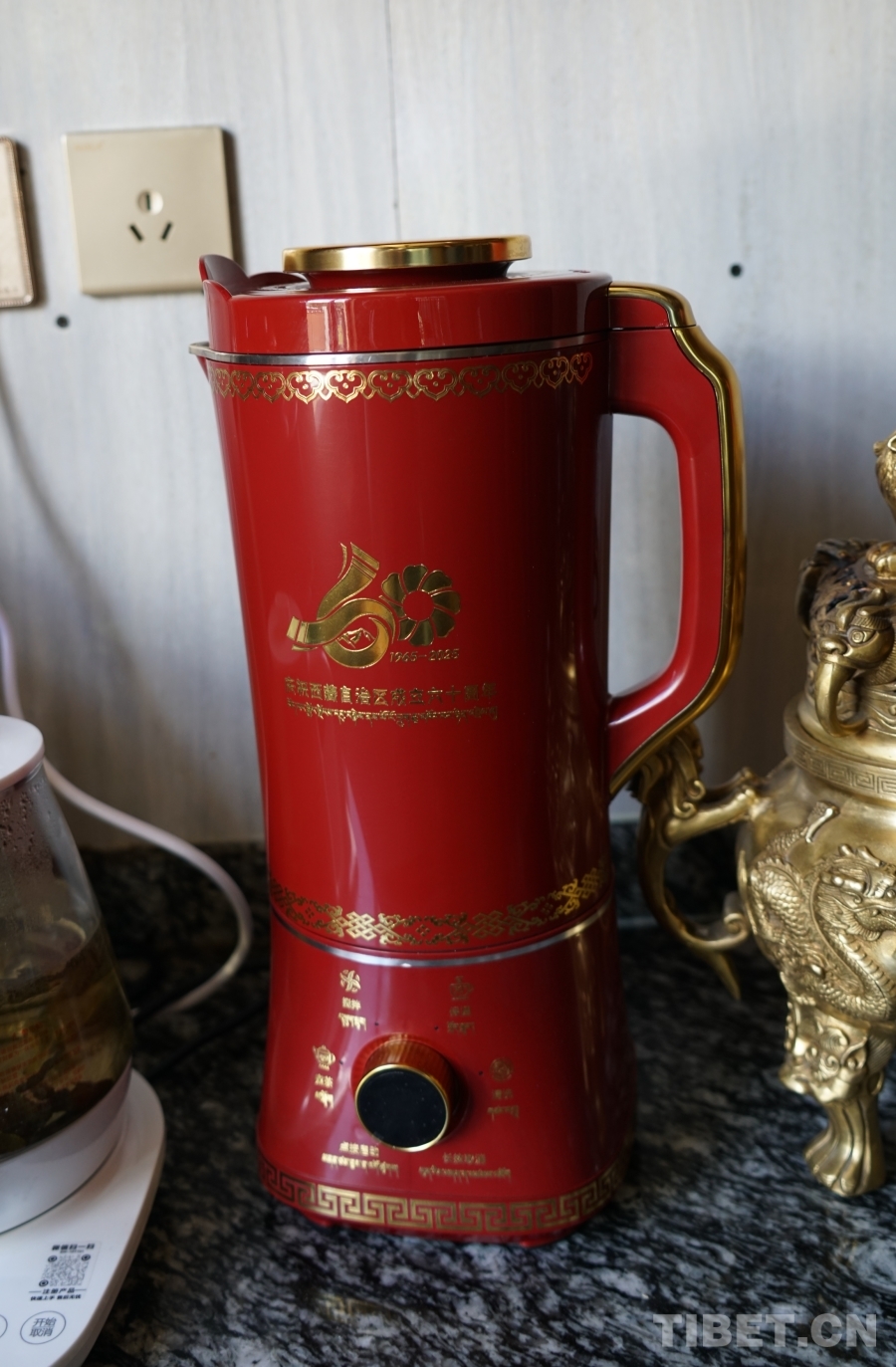圖為西藏自治區(qū)成立60周年中央代表團贈送的紀念品——全自動酥油茶壺 攝影:巫姍燕