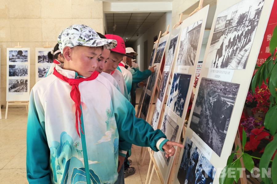 圖為吉隆完全小學(xué)學(xué)生參觀主題圖片展 攝影:張進(jìn)
