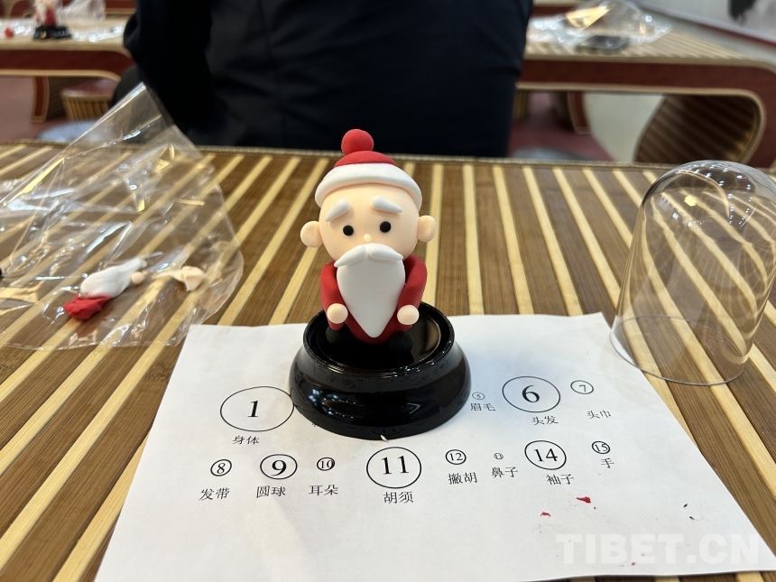 最充滿歡聲笑語(yǔ)的環(huán)節(jié)是體驗(yàn)面塑,紅、黑、白、粉四色面團(tuán)被整齊擺放在孩子們面前,今天他們要親手捏一個(gè)“卡通版孔子”。只見(jiàn)在老師的悉心教導(dǎo)下,這群心靈手巧的孩子們?nèi)〕龃笮〔灰坏母魃鎴F(tuán),揉捏推拉,一個(gè)個(gè)身體部位被逐一制作出來(lái),并依次拼貼到一起。于是,一個(gè)個(gè)戴著儒冠、笑容可掬的“Q版孔夫子”形象便制作出來(lái)。孩子們看著自己的作品十分自豪,并表示要“把自己創(chuàng)作的作品帶回阿里,親手送給自己的好朋友?!痹⒔逃跇?lè)中,文化自信在孩子們心中生根發(fā)芽,并以友誼的方式交流傳遞給更多的人。