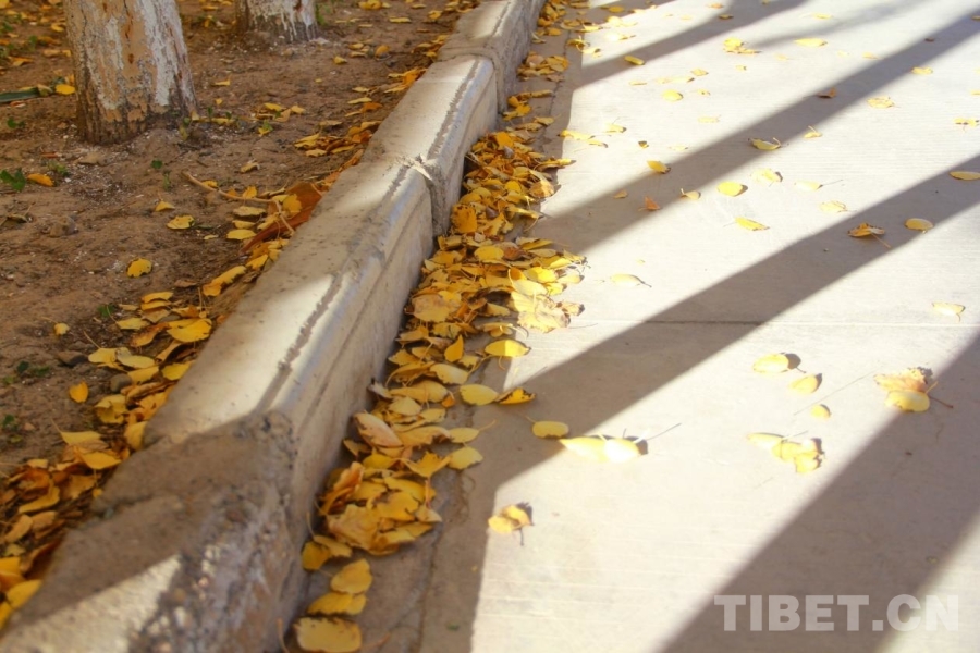 圖為阿里獅泉河鎮(zhèn),落葉滿地 攝影:趙釗