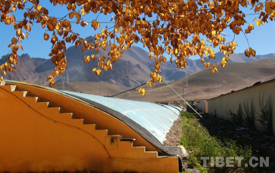 圖為阿里獅泉河鎮(zhèn)噶爾縣生態(tài)農(nóng)業(yè)產(chǎn)業(yè)園內(nèi),大棚上的秋葉 攝影:趙釗