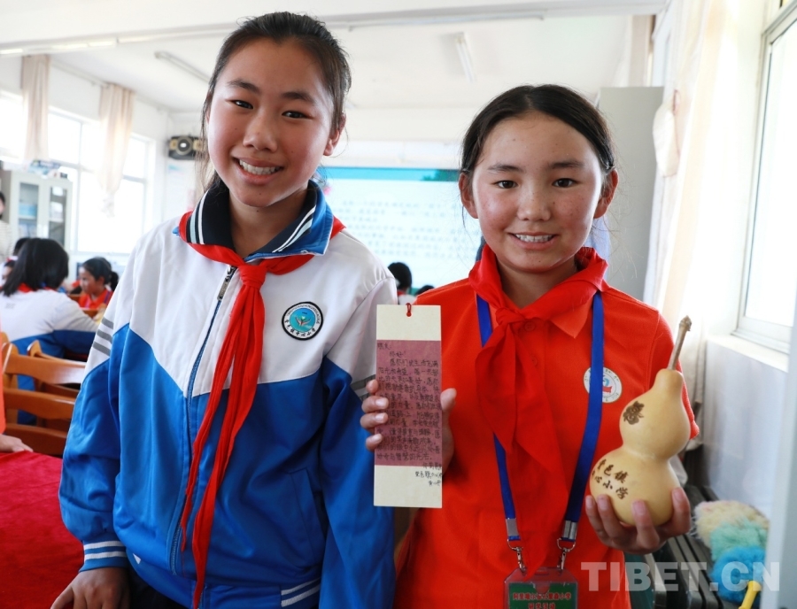 圖為山東聊城堂邑鎮(zhèn)中心小學(xué)的孩子們向西藏阿里噶爾縣孔繁森小學(xué)的小伙伴贈送當(dāng)?shù)靥厣暮J和祝福卡片。每一張卡片上都有孩子們親手寫下的最想對遠(yuǎn)方的小伙伴說的祝福語、心里話。攝影:劉莉