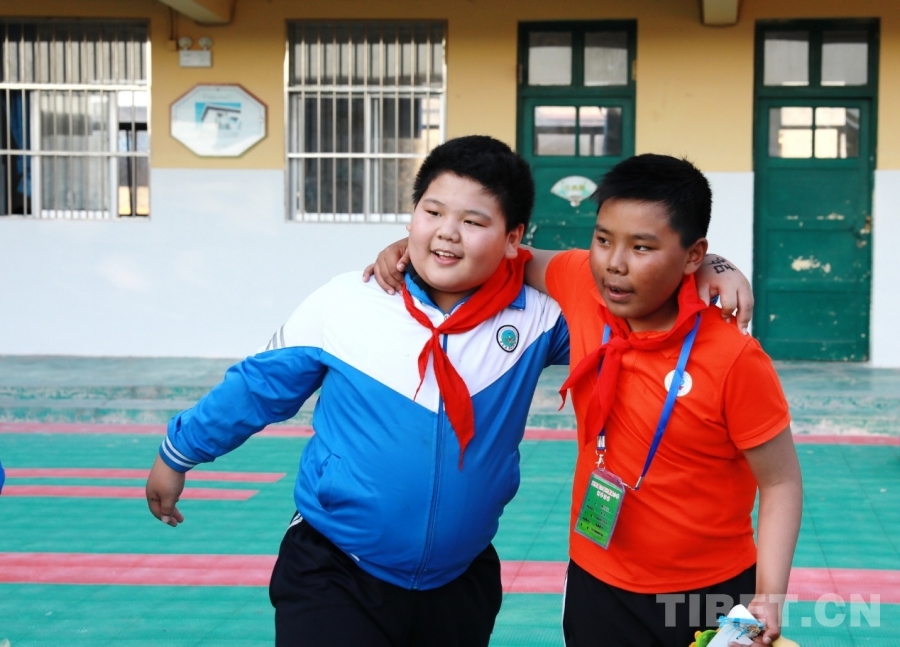 圖為西藏阿里噶爾縣孔繁森小學(xué)的孩子們在山東聊城堂邑鎮(zhèn)中心小學(xué)開展聯(lián)誼活動 攝影:劉莉