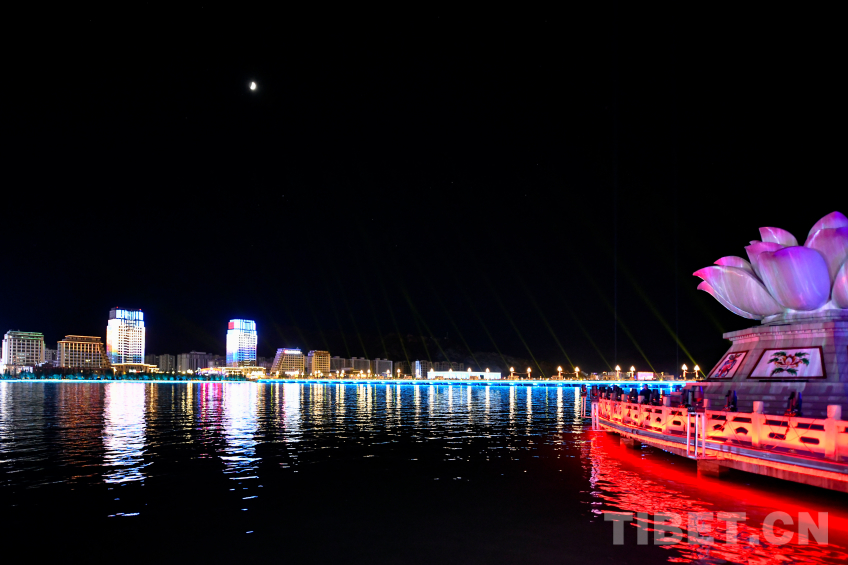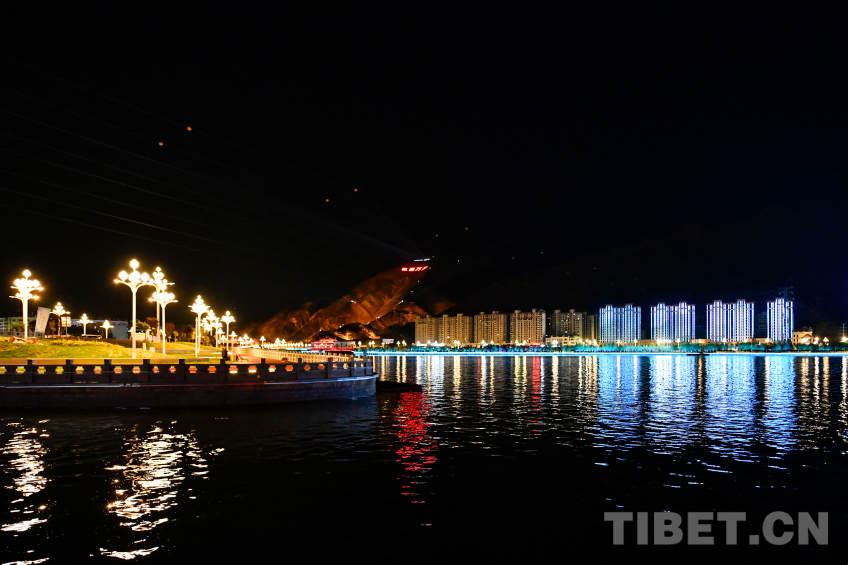 圖為國(guó)慶前夕拉薩河畔璀璨燈光 攝影:趙振宇