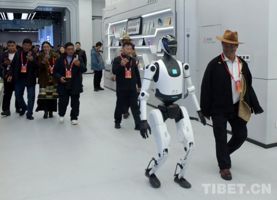 圖為西藏林芝波密縣基層干部在與智能機(jī)器人互動(dòng) 攝影:唐召明