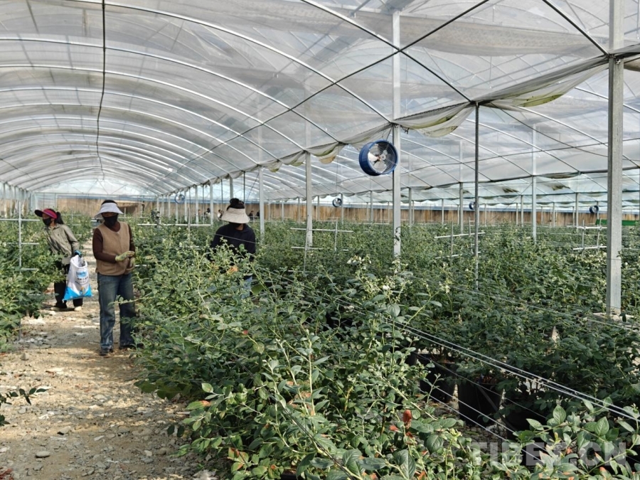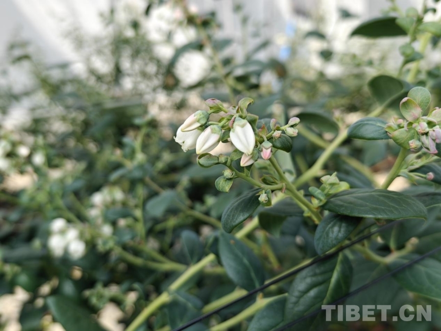 圖為戈壁田園現(xiàn)代農(nóng)業(yè)項目內(nèi)待結(jié)果的藍(lán)莓花