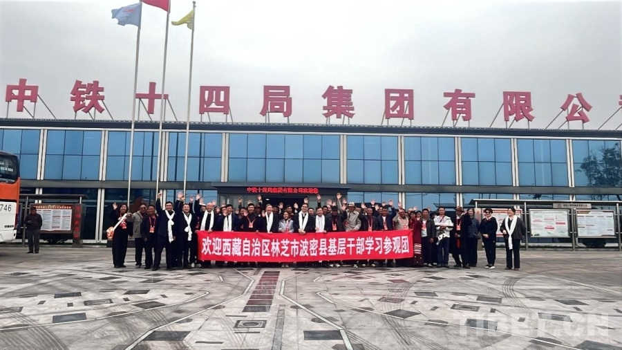 圖為西藏基層干部學(xué)習(xí)參觀團與中鐵十四局相關(guān)人員合影 攝影:王茜