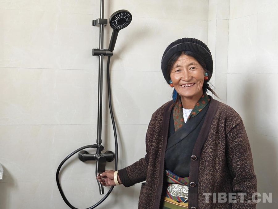 圖為達(dá)桑的愛人正向記者展示自家的淋浴設(shè)施,臉上洋溢著幸福的笑容