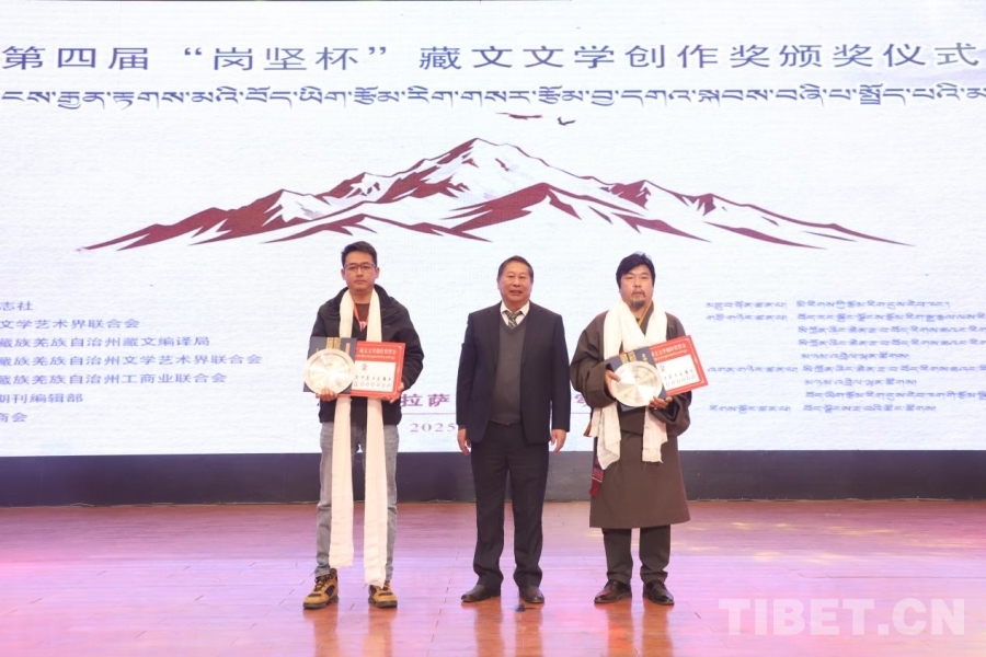 中國西藏網(wǎng)訊 11月8日,第四屆“崗堅杯”藏文文學(xué)創(chuàng)作獎頒獎儀式在拉薩舉行。來自北京、四川、青海、西藏等地的文學(xué)界代表、獲獎作者、藏文文學(xué)期刊主編及讀者代表齊聚一堂,共赴這場植根民族傳統(tǒng)、彰顯時代精神的文化之約,奏響新時代藏文文學(xué)守正創(chuàng)新的昂揚(yáng)旋律。