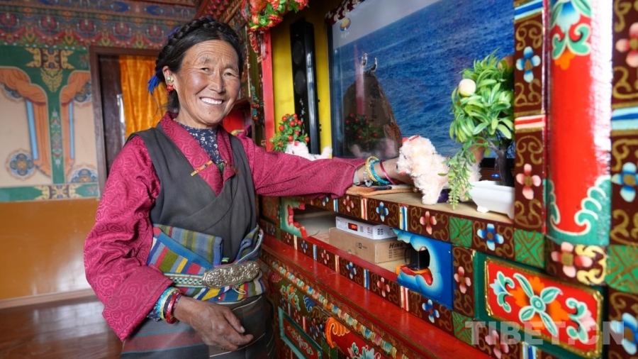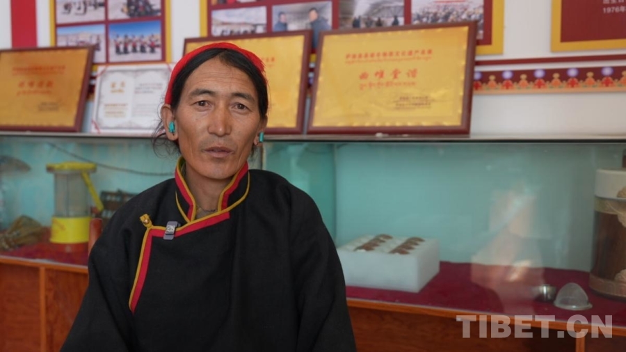圖為薩迦縣雄麥鄉(xiāng)曲堆村村民、藏戲隊員白瑪古入
