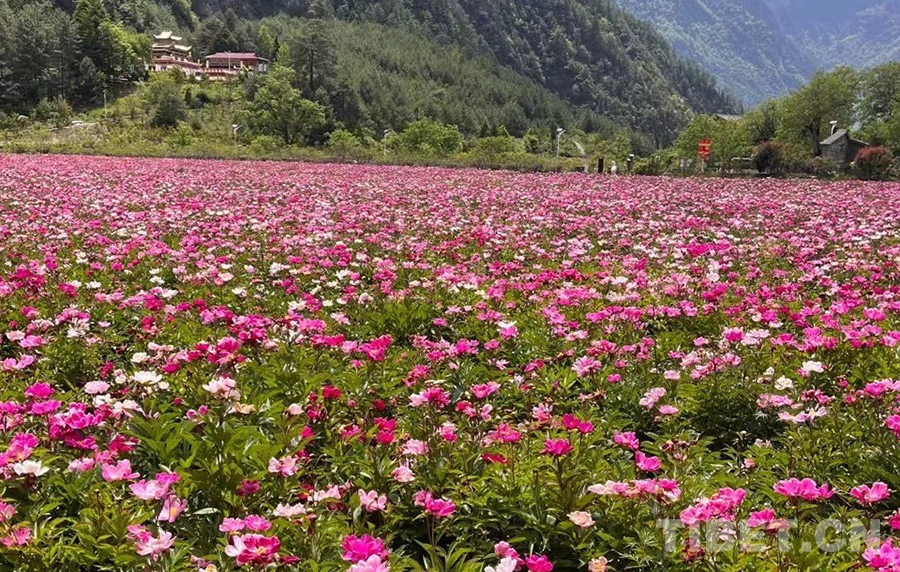 圖為最早種植芍藥時,色龍村的花海 來源:當?shù)毓﹫D