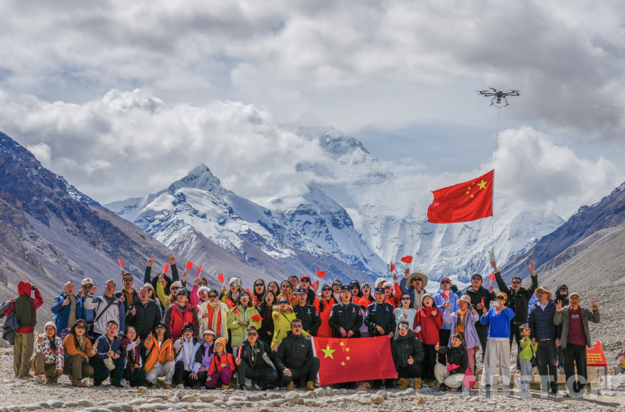 圖為珠峰邊境派出所民警在珠峰腳下和游客歡度2025年國慶節(jié) 攝影:葉軼