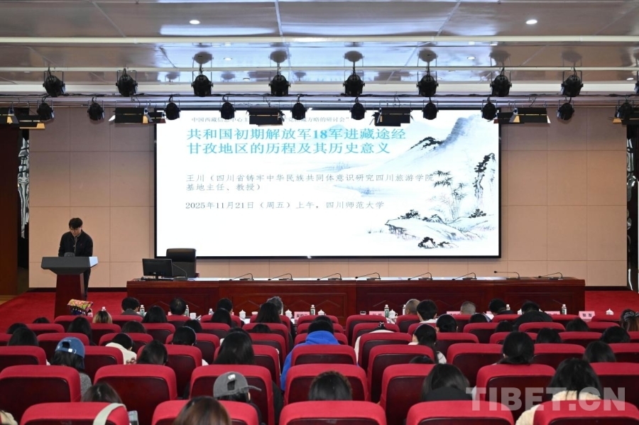 11月21日,在“新時代黨的治藏方略實踐偉力”四川研討會上,四川師范大學中華傳統(tǒng)文化學院助理研究員吳艾坪就四川省鑄牢中華民族共同體意識研究四川旅游學院基地主任、教授王川的相關(guān)研究進行匯報。他圍繞甘孜地區(qū)紅色旅游資源的活化利用,從十八軍進藏途經(jīng)甘孜地區(qū)的歷史展開了探討。